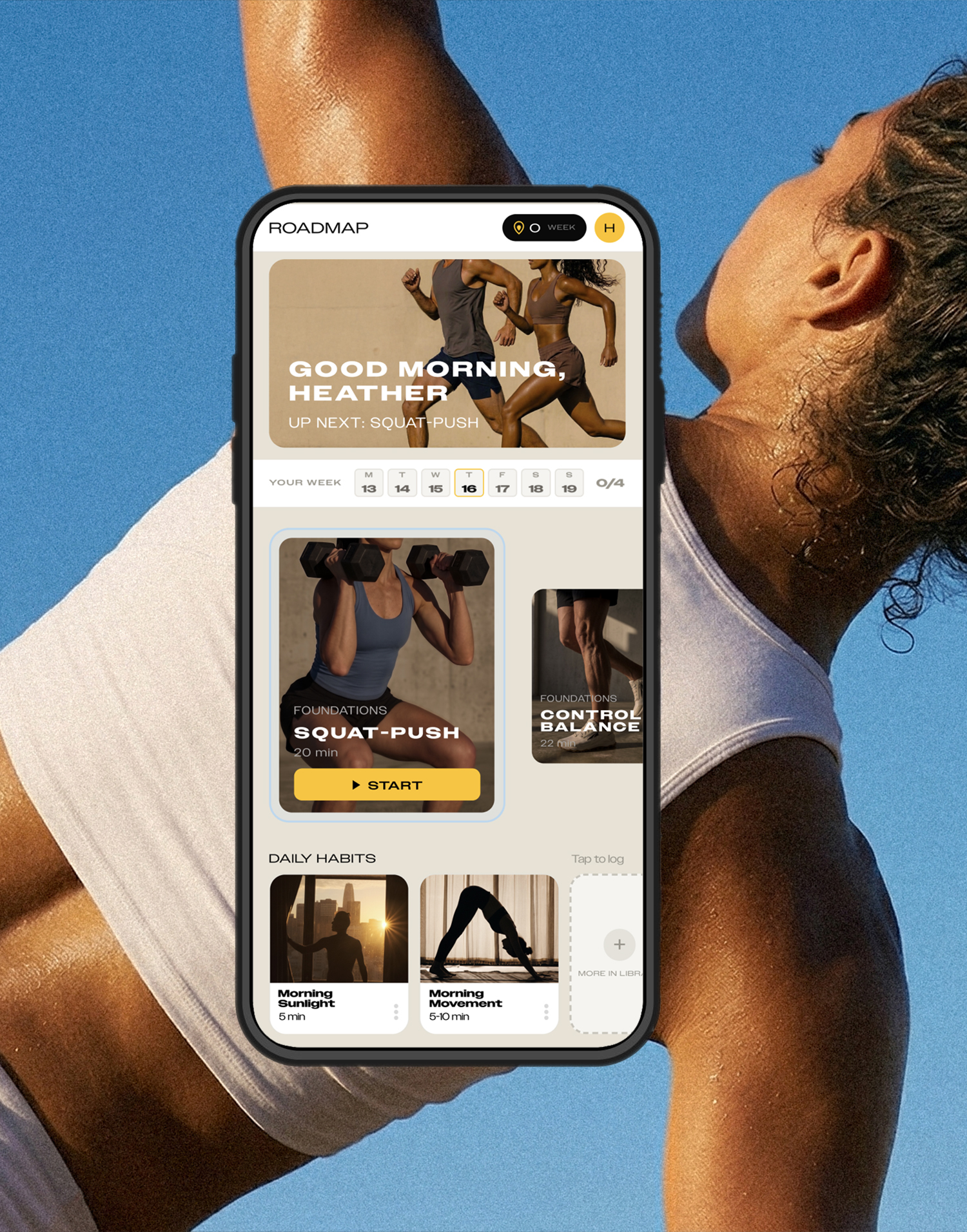 - Personalized training protocols: Signature workouts, foundation circuits, power days, interval sessions, and aerobic builders—all designed to improve your specific biomarkers. Daily routines, warmups, and recovery protocols included, featuring Lead Coach Junior Kennedy.